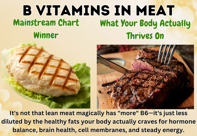 Mainstream nutrient charts love to push “lean” cuts of meat as having “more” B vitamins per ounce. But here’s the truth: Fat itself contains basically