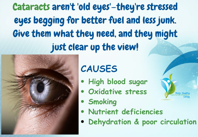 Cataracts aren’t inevitable “aging”. Cataracts develop when the lens of the eye becomes cloudy, usually from oxidative stress and inflammation over time. While they’re often