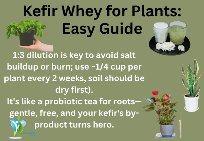 Using kefir whey for plant superfood status is one of my fave hacks—it’s a nutrient flush without the chemicals! 1:3 dilution is key to avoid