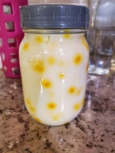 • For a quart batch (3–4 servings): Start with a couple generous pinches total (soaked overnight for that beautiful starburst color). Your daily serving will land in the sweet spot. Adjust by eye — if it’s not a pretty golden yellow in the morning, add a few more threads next time!