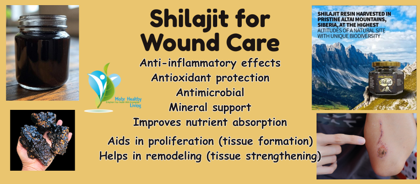 Antimicrobial Properties: Shilajit has mild antimicrobial effects, which may reduce the risk of wound infections, a common barrier to healing.