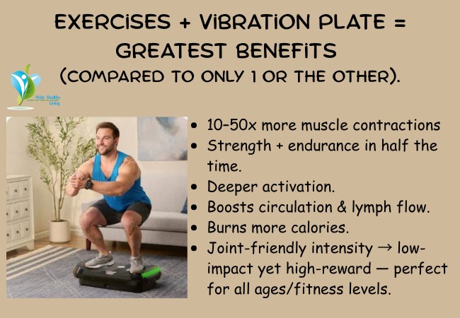 - Boosts circulation & lymph flow → exercise pumps blood, vibration accelerates detox — better recovery, less soreness.